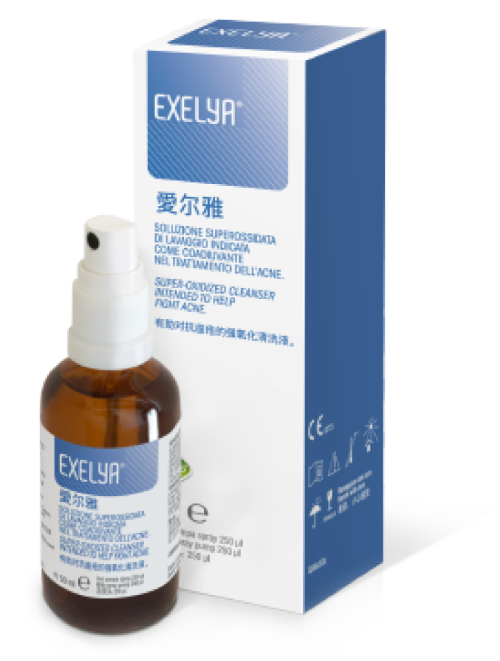 EXELYA® is the Active Cleanser that, supporting the creation of an ideal cutaneous lesions microenvironment, helps to fight acne.